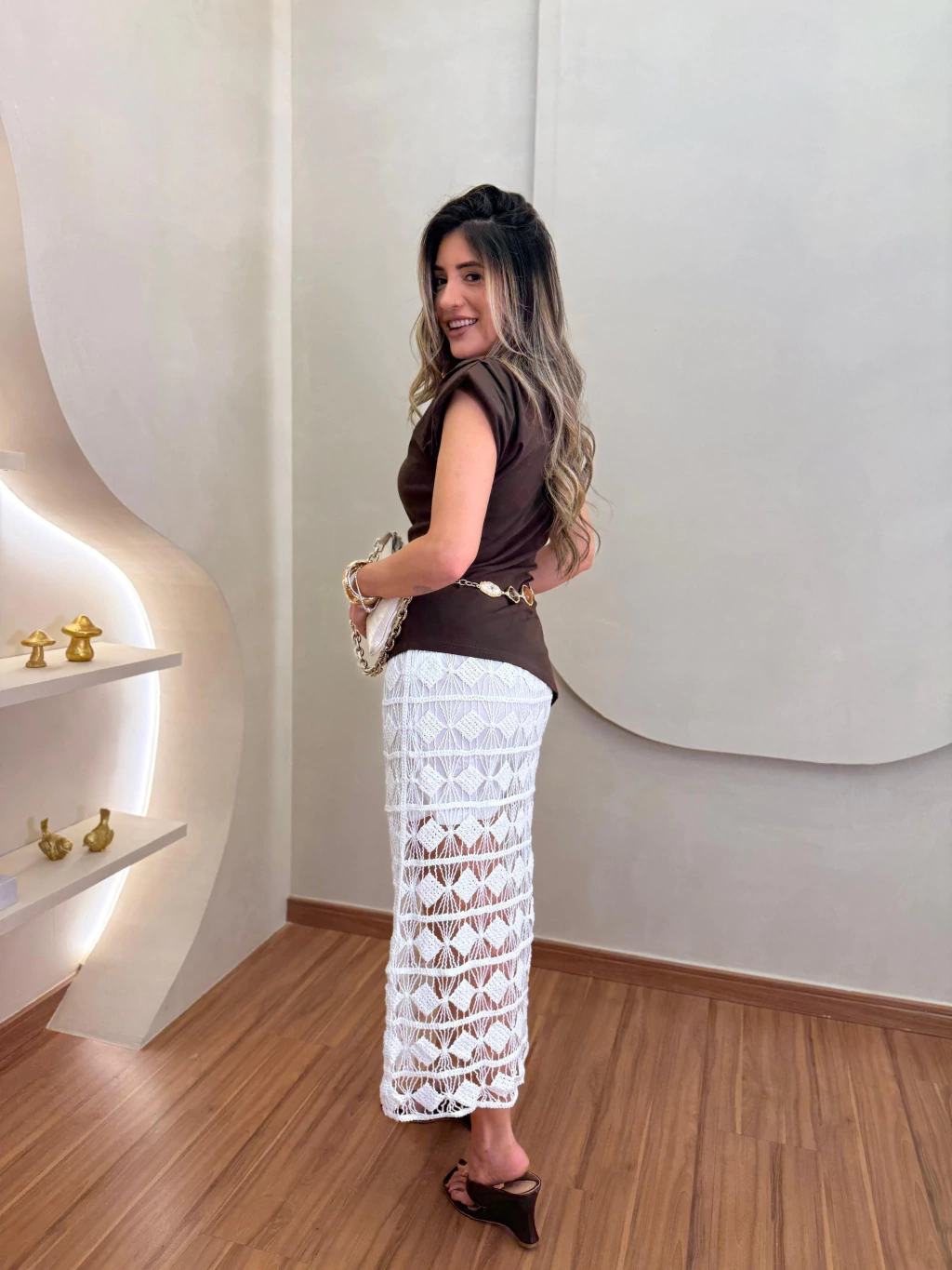 Além do conforto proporcionado pelo tecido com elastano, a modelagem assimétrica com ombreira confere um visual sofisticado e atual, ideal para produções que vão do casual ao elegante. Versátil, ela é perfeita para combinar com calças, saias ou shorts, elevando seu look com um toque de modernidade.