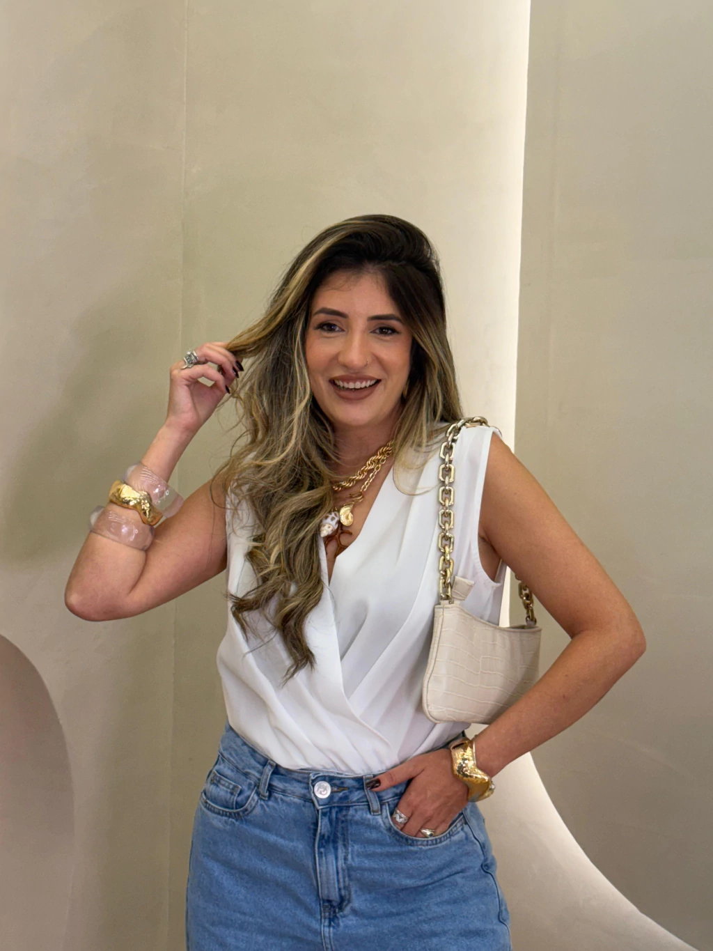 O Body Livia é a peça que faltava para trazer sofisticação e versatilidade ao seu guarda-roupa. Confeccionado em crepe de alta qualidade, ele oferece um caimento impecável e confortável, perfeito para diversas ocasiões — do dia a dia ao evento especial.