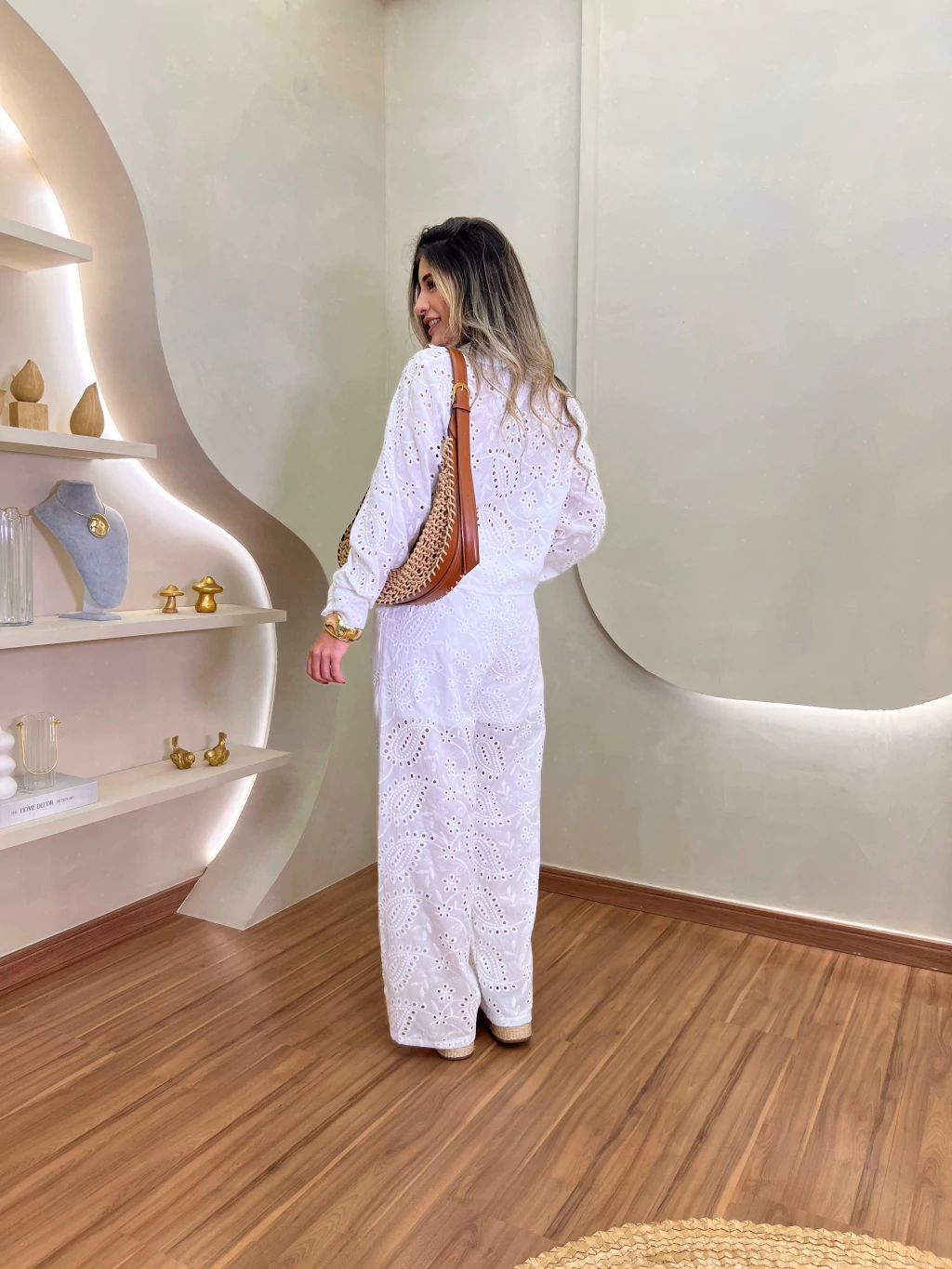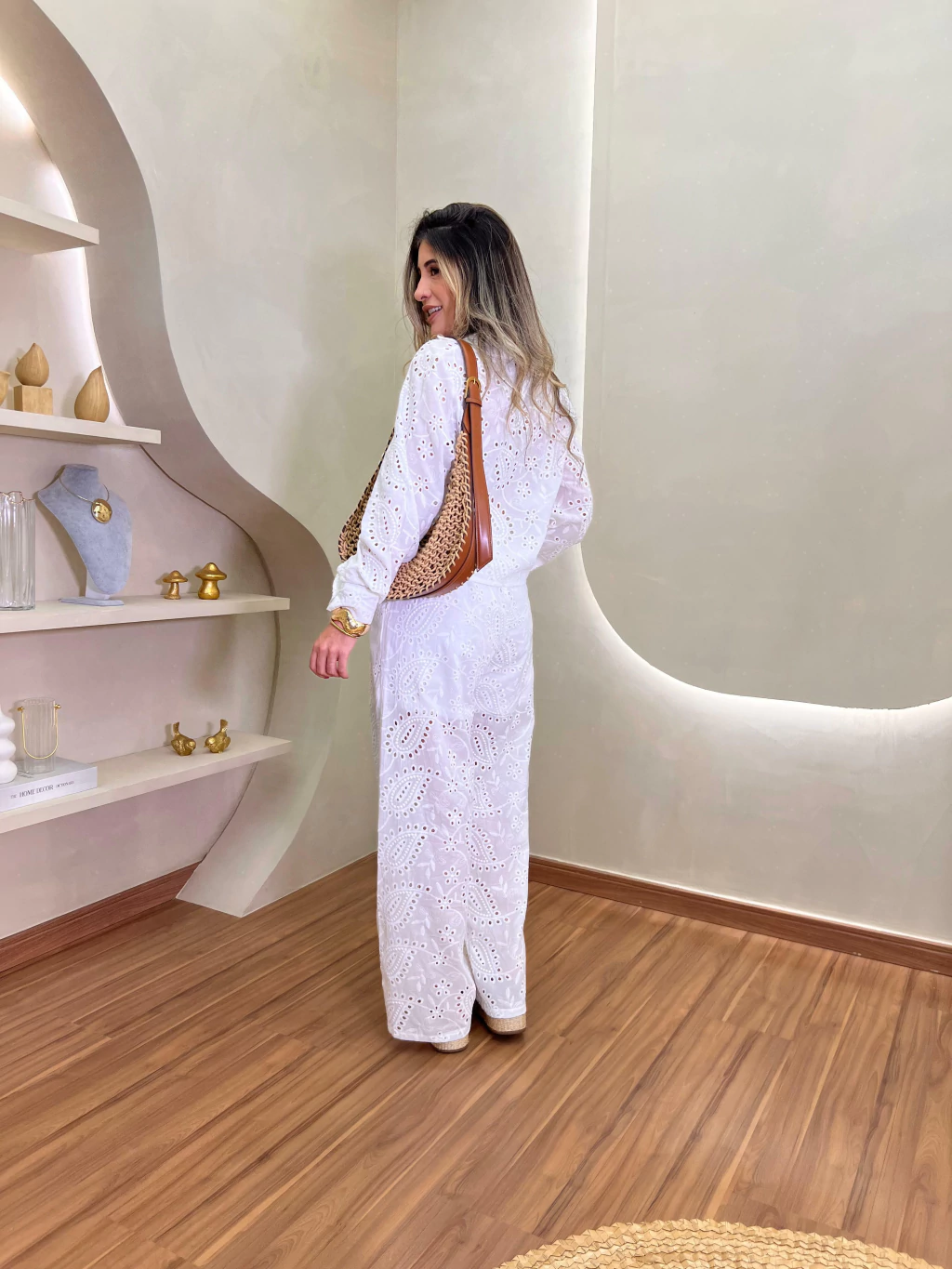 O Conjunto Yas é a escolha perfeita para quem busca unir elegância e praticidade em uma peça leve e versátil. Confeccionado em guipir de alta qualidade, ele oferece um toque sofisticado para seu guarda-roupa, ideal para ocasiões especiais ou para elevar o visual do dia a dia.