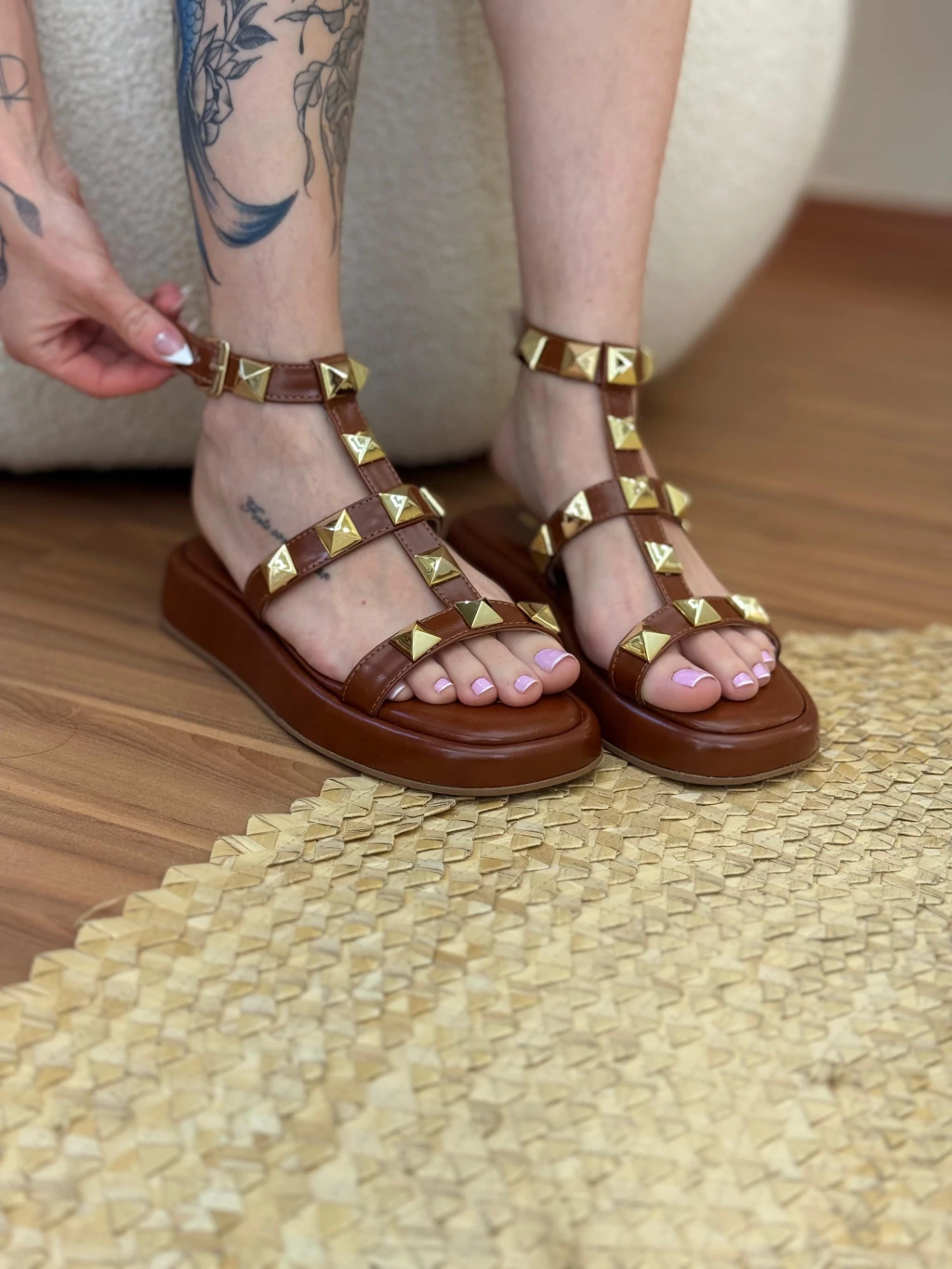 A Papete Feminina em Couro Sintético com Tachas Douradas é a escolha perfeita para quem busca aliar conforto e um toque moderno ao visual. Confeccionada em couro sintético de alta qualidade, esta papete apresenta tiras largas adornadas com tachas douradas em formato piramidal, conferindo um charme sofisticado e arrojado ao seu look.