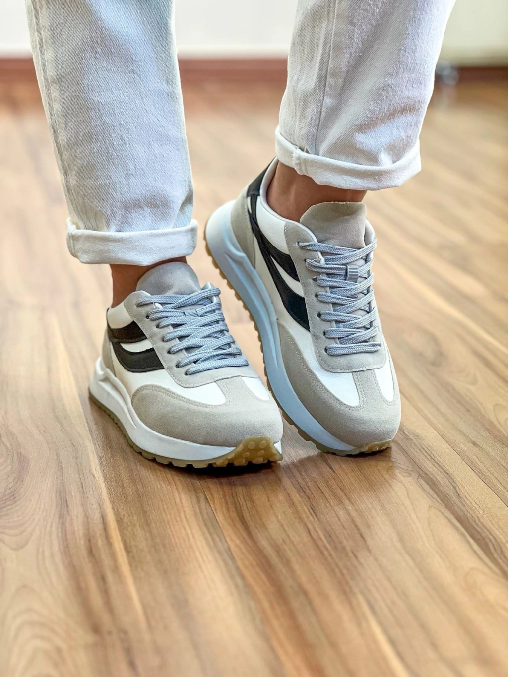 O Tênis Lorena é a escolha perfeita para quem busca um calçado que une o charme do estilo retrô com a modernidade e conforto necessários para o cotidiano. Confeccionado em material sintético de alta qualidade com detalhes em camurça, ele traz uma combinação elegante de branco, cinza e preto, garantindo versatilidade para compor desde looks casuais até os esportivos.