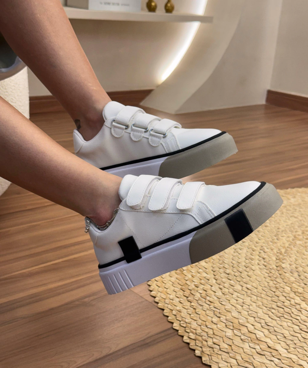 O Tênis Natalia é a escolha ideal para quem busca conforto e estilo em um só produto! Com seu design reto e detalhes em cores básicas, ele é perfeito para compor looks versáteis e modernos.