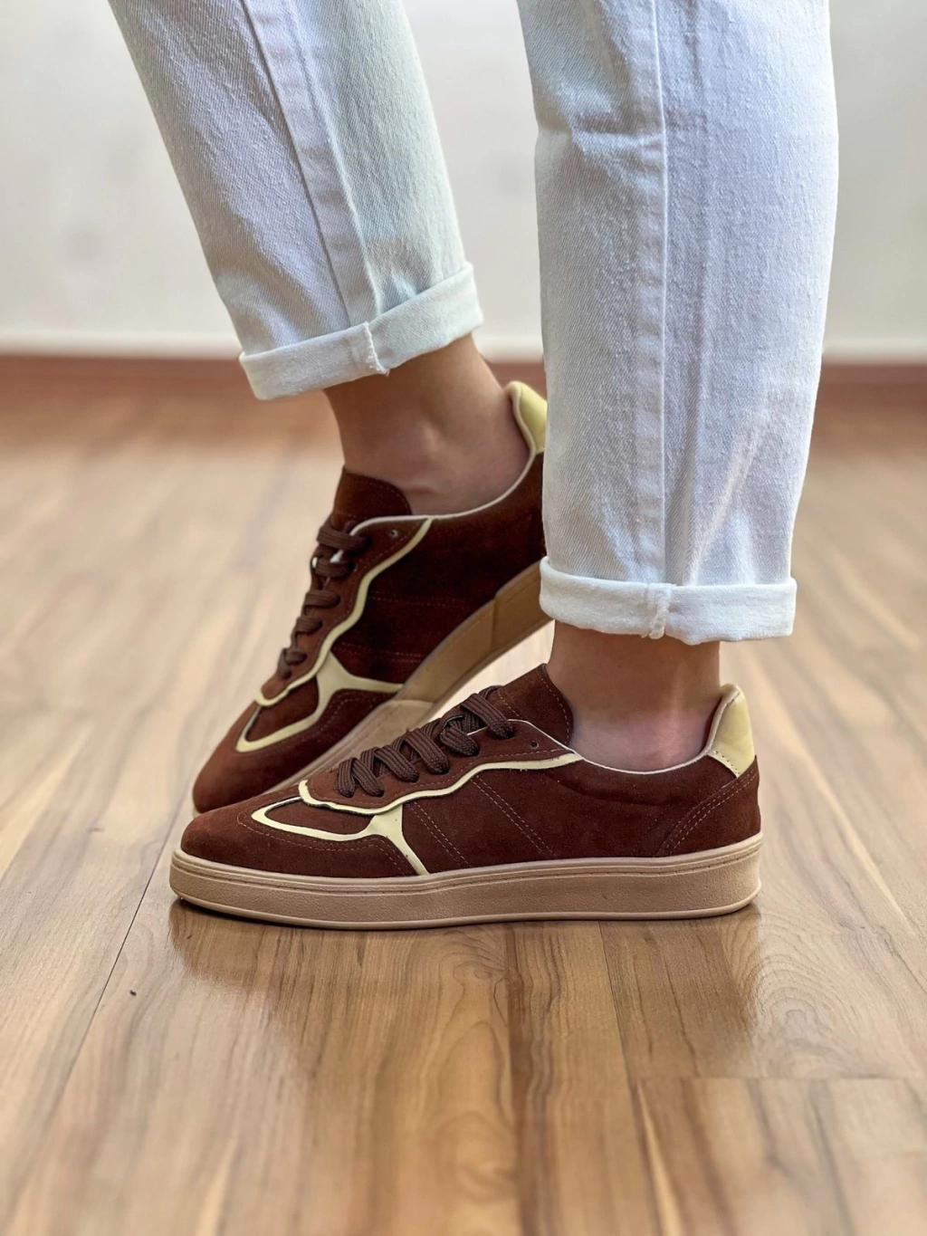 O Tênis Virginia é a escolha perfeita para quem busca um calçado unissex que une design moderno e estilo sofisticado em um só produto. Confeccionado em material sintético com acabamento em camurça, ele traz uma combinação elegante entre o marrom e detalhes em bege, oferecendo um visual versátil que combina com diversos looks casuais.
