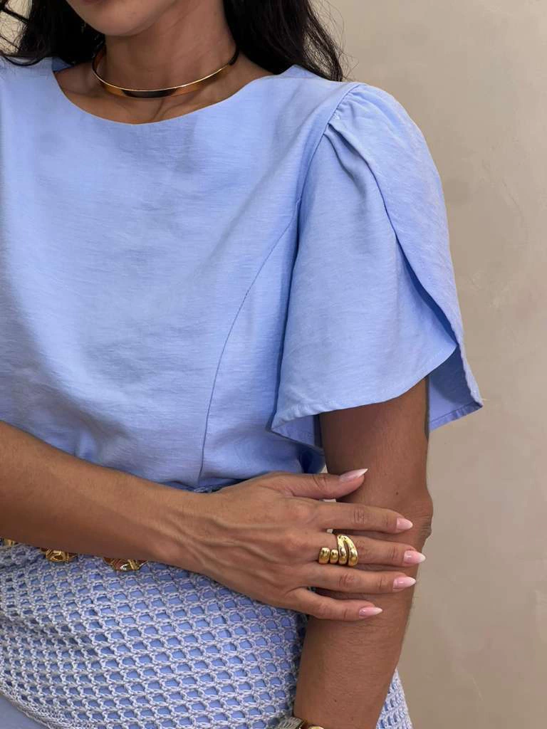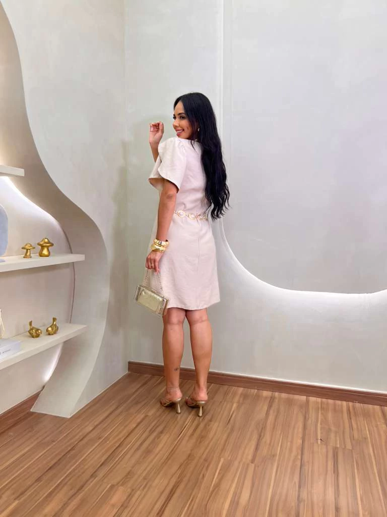 Detalhes que fazem a diferença: - Mangas em babados que adicionam um toque delicado e feminino ao visual. - Zíper invisível nas costas para um fechamento discreto e acabamento sofisticado.
