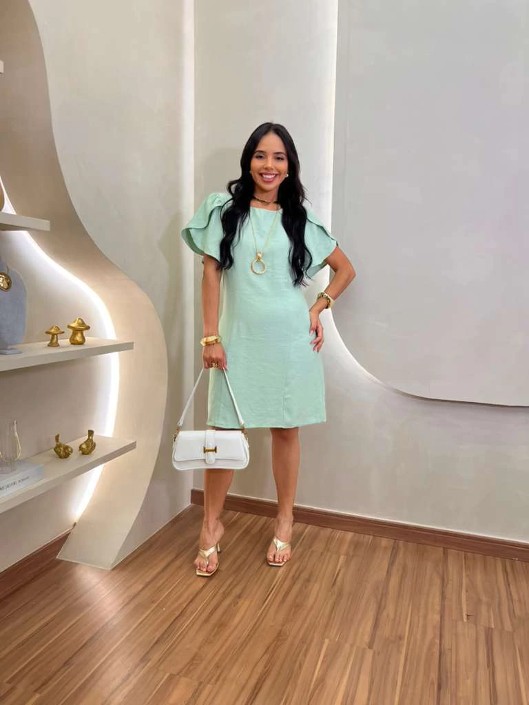 Por que escolher este vestido? - Tecido leve e confortável, ideal para o clima brasileiro. - Design delicado com mangas babados que destacam sua feminilidade. - Zíper invisível para um look clean e moderno.